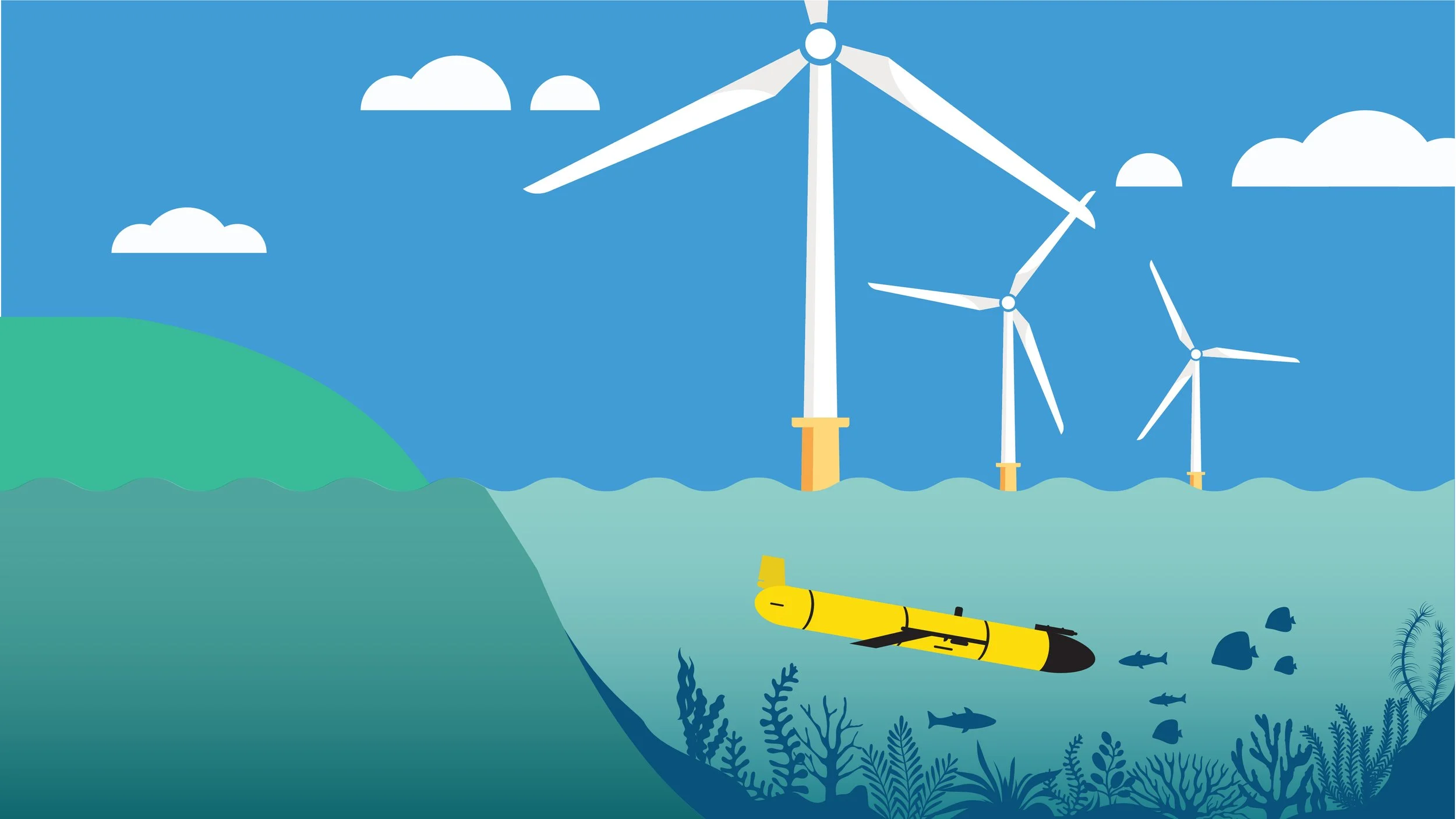 Highlighting what Orsted are doing in conjunction with their wind farms to help combat climate change. Illustration myself, Orsted and Getty Images